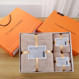 Material: Coral Fleece | Box size: 38cm x 30cm x 7cm | Weight: bath towel 275g + face towel 78g | Include of 1 bath towel & 2 face towels