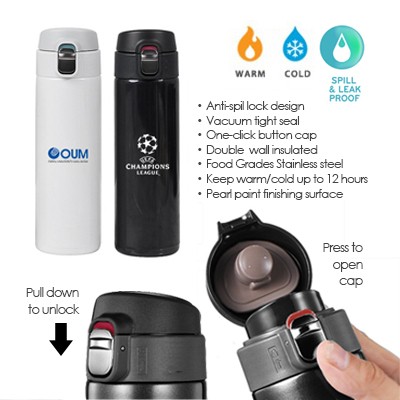 Lock Tech II Vacuum Flask is features a single button auto open mechanism, a safety anti-spill lock and a stainless steel insulated body.